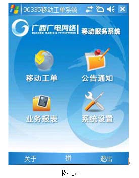 移動(dòng)工單系統(tǒng)是數(shù)字電視客戶呼叫中心平臺(tái)系統(tǒng)的延伸,它結(jié)合最新的網(wǎng)絡(luò)移動(dòng)技術(shù),實(shí)現(xiàn)數(shù)字電視服務(wù)工單分派業(yè)務(wù)的自動(dòng)流轉(zhuǎn)和實(shí)時(shí)流轉(zhuǎn),各地市維護(hù)站的服務(wù)工作人員通過(guò)智能手機(jī)終端,實(shí)時(shí)獲取工作任務(wù)、計(jì)劃安排,進(jìn)行業(yè)務(wù)處理,通過(guò)移動(dòng)網(wǎng)絡(luò)查詢(xún)客戶信息、查詢(xún)用戶產(chǎn)品訂購(gòu)資料,上報(bào)處理結(jié)果和用戶反饋信息,通過(guò)移動(dòng)網(wǎng)絡(luò)提交到管理部門(mén),管理層能及時(shí)的掌握服務(wù)進(jìn)展情況,并能隨時(shí)做出決策和指揮,真正實(shí)現(xiàn)對(duì)用戶最快速、有效的服務(wù)需求響應(yīng),保證了服務(wù)質(zhì)量和用戶滿意度,提升了數(shù)字電視的服務(wù)水平與服務(wù)檔次。其界面如圖1所示。