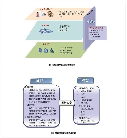 無線業(yè)務(wù)網(wǎng)絡(luò)通常在管理上都是采用帶外管理,但是帶外管理同樣也會(huì)引入安全威脅。管理層面的安全威脅點(diǎn)主要是非授權(quán)訪問、網(wǎng)絡(luò)層攻擊、管理信息泄漏/篡改等,相應(yīng)的對策如圖2。