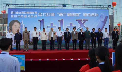 9月5日,“銀川市‘1+1+X’便民電話服務(wù)工程啟動(dòng)暨便民電話服務(wù)卡首發(fā)儀式”在銀川市光明廣場(chǎng)隆重舉行。銀川市市長(zhǎng)白雪山,寧夏自治區(qū)電信總公司總經(jīng)理馬林峰等出席了啟動(dòng)儀式。