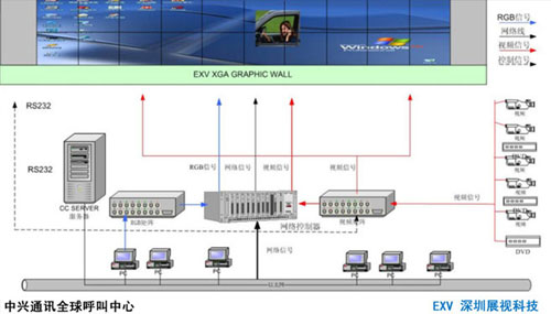 中興通訊股份有限公司是中國通訊設備制造領域最大的上市公司,正在實施的全球呼叫中心工程為了滿足中興通訊股份有限公司業(yè)務發(fā)展的需要,實現(xiàn)呼叫中心的網管自動化及完善中興通訊全球一體化服務體系,中興通訊的全球呼叫中心選用的是EXV公司的DLP大屏幕拼接墻產品。