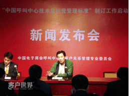 2月7日,中國電子商會呼叫中心與客戶關(guān)系管理專業(yè)委員會(CNCCA)在北京信息產(chǎn)業(yè)部萬壽路辦公區(qū)召開“中國呼叫中心技術(shù)及運營管理規(guī)范”制訂工作啟動新聞發(fā)布會。在京各主要新聞媒體高度關(guān)注在國家宏觀政策轉(zhuǎn)向服務(wù)外包的大背景下,呼叫中心中國標(biāo)準(zhǔn)的出臺將為產(chǎn)業(yè)的發(fā)展和國際競爭格局的變化帶來如何的影響。呼叫中心行業(yè)各知名廠商、運營商、服務(wù)提供商代表出席新聞發(fā)布會。會議同時發(fā)布了《2007年中國呼叫中心運營標(biāo)桿管理報告》。