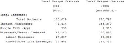 comScore最近放出的一份IM統(tǒng)計結(jié)果如下(單位為千):