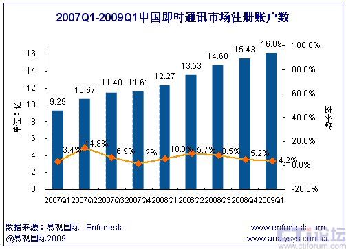 2009年第1季度中國即時通訊市場累計注冊賬戶數(shù)達(dá)16.1億