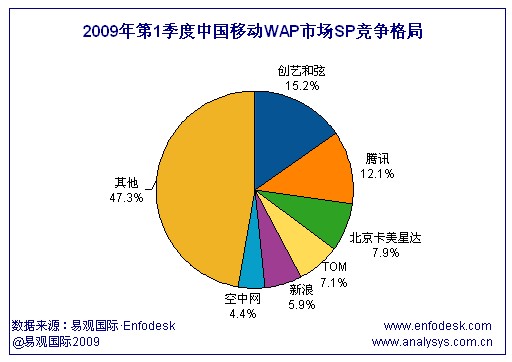 2009年第1季度中國移動WAP市場集中度提高前五名占據(jù)市場半壁江山