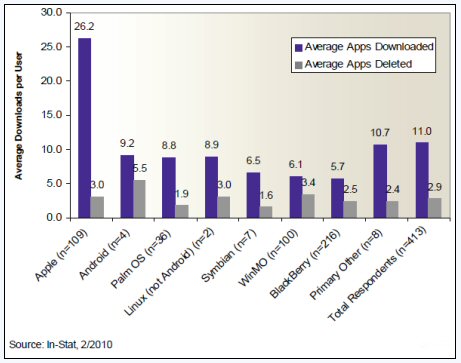 除了應(yīng)用程序下載之外,In-Stat也追蹤應(yīng)用程序的實(shí)際使用情況,發(fā)現(xiàn)用戶時常在下載某個程序但覺得不感興趣后,就把它刪除了,尤其是免費(fèi)的應(yīng)用程序。
