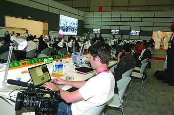 世博的主新聞中心一開門便受到媒體的“熱捧”。中國(guó)電信的后臺(tái)信息系統(tǒng)顯示,世博主新聞中心的數(shù)據(jù)量一直居高不下,因?yàn)橛浾哒χ米烂嫔系?00M有線寬帶高速上網(wǎng)、收發(fā)稿件、傳送采訪的視頻。在世博主新聞中心一樓記者工作大廳,想在300個(gè)坐席里找個(gè)空位可不是容易的事情。