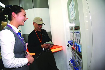 5月1日下午,美國(guó)游客安迪的手機(jī)在上海不能使用,找到中國(guó)電信世博營(yíng)業(yè)廳尋求幫助。安迪借用電信營(yíng)業(yè)員的手機(jī)與失散的親友聯(lián)絡(luò)。