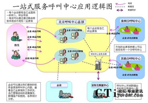 - 依托完善的呼叫中心技術(shù)平臺(tái),好醫(yī)生在國(guó)內(nèi)唯一的國(guó)家級(jí)醫(yī)藥產(chǎn)業(yè)基地——泰州“中國(guó)醫(yī)藥城”構(gòu)建完成了國(guó)內(nèi)首家具有100座席以上處理能力的醫(yī)藥衛(wèi)生領(lǐng)域的專業(yè)化呼叫中心。該呼叫中心企業(yè)具有多址分布、全國(guó)組網(wǎng)功能。座席組物理上既可以在北京(好醫(yī)生的呼叫中心總部),也可以在北京以外的任何地區(qū)(好醫(yī)生的呼叫中心分部);通過(guò)IP技術(shù),呼叫中心的各路話務(wù)統(tǒng)一由北京接入或呼出。