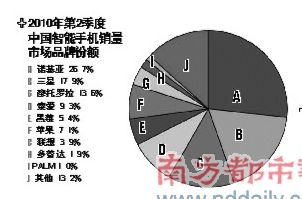 市場調(diào)研機構(gòu)易觀國際最新監(jiān)測數(shù)據(jù)顯示,中國智能手機市場2010年第2季度國內(nèi)銷售總量達1348.1萬部(不計黑手機和水貨手機),環(huán)比增長27.5%.在蘋果iOS與谷歌Android平臺沖擊下,Symbian合作伙伴在資源投入方面出現(xiàn)分化跡象,紛投蘋果、谷歌陣營,導(dǎo)致背后的諾基亞市場份額持續(xù)下滑。