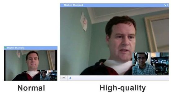 這個圖片顯示了以前和現(xiàn)在的視頻聊天窗口的對比。左邊是Gmail中老式的標(biāo)準(zhǔn)視頻聊天窗口。右邊是新的、高質(zhì)量的視頻聊天窗口,對于寬屏顯示屏是非常合適的。