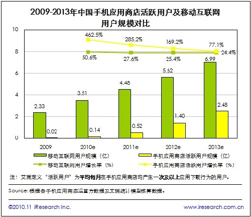 2010年中國手機(jī)應(yīng)用商店用戶增速遠(yuǎn)超移動(dòng)互聯(lián)網(wǎng)