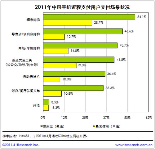 艾瑞咨詢:中國手機(jī)近程支付場景主要為超市和便利店