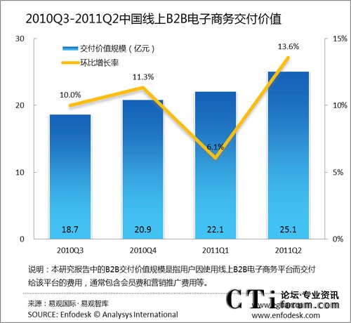 2011年第2季度線上B2B市場交付價值達25.1億元