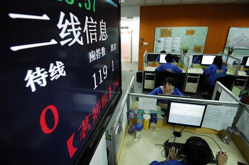 9月23日,商務(wù)城客服電話外包公司員工在呼叫中心為客戶提供外包客服電話服務(wù)。