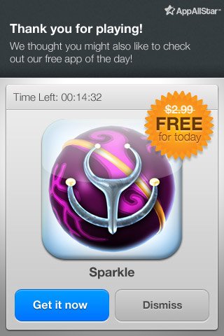 怎樣有效的將應(yīng)用貨幣化呢?簡單的說,我們首先需要判斷當(dāng)前用戶群的客戶終身價值,然后通過一系列方法使該價值得到持續(xù)的提升;這些方法包括“應(yīng)用內(nèi)”的普通廣告、產(chǎn)品體驗廣告、來自相同發(fā)布商的其他應(yīng)用信息、相關(guān)增值產(chǎn)品與服務(wù)等。下圖所示的就是在應(yīng)用中推銷另一款產(chǎn)品的典型案例。