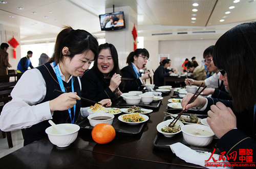 食堂的大樓很霸氣,里面的飯菜也很豐盛,價(jià)格也比外面便宜不少。每人每月有200多元的伙食補(bǔ)貼。若是吃不完卡里的錢(qián),還可以兌換成超市卡。