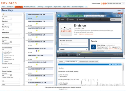 Envision Centricity是公司完整的WFO套件,對(duì)呼叫中心座席和企業(yè)層面的數(shù)據(jù)和績(jī)效進(jìn)行收集、監(jiān)控和分析。它是由多個(gè)應(yīng)用程序組成,包括用于排班、調(diào)度和人員配備的Envision Workforce Managemen,質(zhì)量監(jiān)控、身份識(shí)別和兼容;座席績(jī)效改善的Click2Coach,公司結(jié)合質(zhì)量監(jiān)控和在線學(xué)習(xí),能夠提供有針對(duì)性的輔導(dǎo)。