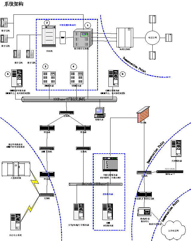 。。下面的圖表根據(jù)組件(硬件、軟件和網(wǎng)絡(luò)架構(gòu))及各組件間的連接(接口)“設(shè)計(jì)”了目標(biāo)呼叫中心系統(tǒng)。在協(xié)作中,這些架構(gòu)組件提供了運(yùn)行需求系統(tǒng)需要的技術(shù)服務(wù)。
