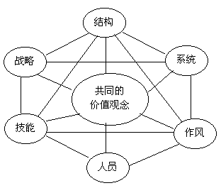 按照麥肯錫以及科特勒的綜合觀點,前面三個要素戰(zhàn)略、結(jié)構(gòu)和系統(tǒng)被認為是最成功的硬件;后面四個要素作風、人員、技能和共同的價值觀念是軟件。每個組織都和總體環(huán)境的某個部分相互影響,相互作用,并且把這一部分成為相關(guān)環(huán)境,并且指出最能適應(yīng)環(huán)境的公司必將獲得成功。