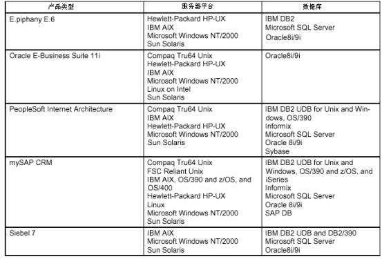 有些環(huán)境是軟件所必須要支持的。技術架構必須要支持Microsoft NT/2000、Sun Solaris服務器平臺、IBM DB2、Microsoft SQL Server和Oracle Server管理系統。這些都是世界領先的系統環(huán)境,而且也是企業(yè)最可能要使用到的系統。因此如果產品不能支持這些環(huán)境顯然會產生很大的局限性。從上表我們可以看出,除了Oracle外都能夠支持這些“必須的“環(huán)境。(因為Oracle必須要支持自己的數據庫。)