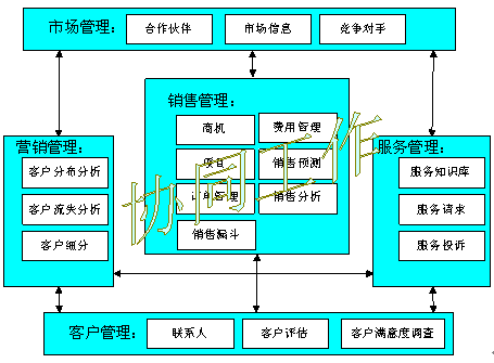 以客戶管理、銷售、服務(wù)、營銷、市場(chǎng)之間的協(xié)同工作(CooperativeWorking)為基礎(chǔ)目標(biāo);