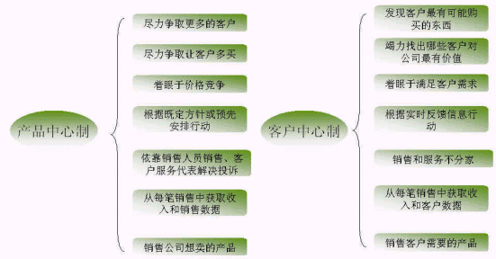 蓋洛普認(rèn)為新型的企業(yè)與客戶的關(guān)系應(yīng)當(dāng)是以"客戶為中心"與客戶的互動(dòng)關(guān)系,通過滿足客戶需求提高客戶滿意度來吸引和留住客戶,從而建立和保持企業(yè)的競(jìng)爭(zhēng)優(yōu)勢(shì)。這其實(shí)就是從產(chǎn)品中心制到客戶中心制的演變的體現(xiàn),如下圖: