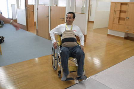 大阪是我們此次日本行程的最后一站,在東京的時候曾去過松下中心和豐田中心,那里都有一些客戶體驗的項目。松下中心是讓客戶通過圖像來體驗電器開關(guān)放在何種位置上才能使殘疾人更舒適,而豐田中心則是讓你在駕駛中體驗充電微型轎車的樂趣。與它們不同的是,納得工房讓你真真正正疑似了一把,做了一回疑似殘疾人、疑似老年人、疑似孕婦。