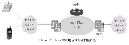 雖然從方式上看,IP話音業(yè)務(wù)包括了Phone TO Phone、PC TO Phone及PC TO PC三種方式,但是國(guó)內(nèi)主流的IP電話網(wǎng)絡(luò)仍然是以Phone TO Phone方式進(jìn)行,其網(wǎng)絡(luò)拓?fù)浣Y(jié)構(gòu)如圖所示。