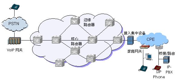 圖1 VoIP承載網(wǎng)絡體系架構示意圖