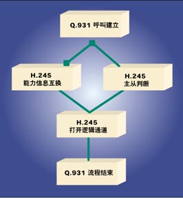 Q.931呼叫建立流程啟動(dòng)呼叫建立過(guò)程并且通知遠(yuǎn)程終端有一個(gè)呼入。當(dāng)呼叫建立起來(lái)后,某個(gè)終端可能啟動(dòng)H.245規(guī)定的主從判斷流程或能力信息互換流程。每個(gè)終端都需要執(zhí)行能力信息互換流程,但是只要一個(gè)終端執(zhí)行主從判斷流程就可以了。主從判斷和能力信息互換完成后,邏輯信道打通了。最后,該對(duì)話通過(guò)另一個(gè)Q.931流程關(guān)閉。