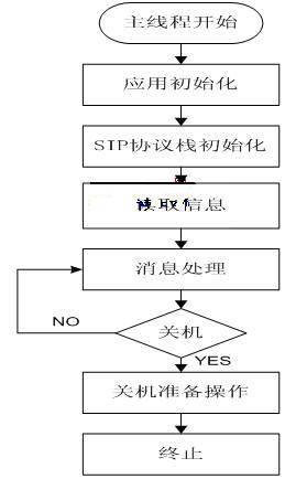 系統(tǒng)軟件是基于SIP協(xié)議棧的基礎(chǔ)上實(shí)現(xiàn)的。由于SIP協(xié)議棧采用模塊化設(shè)計(jì)思想,因此,系統(tǒng)軟件可以直接調(diào)用協(xié)議棧各模塊提供的API。軟件應(yīng)用模塊的消息獲取線程是實(shí)時(shí)獲取協(xié)議棧處理的結(jié)果(以消息或事件的形式存儲(chǔ)在協(xié)議棧消息隊(duì)列中),并把它轉(zhuǎn)換成系統(tǒng)應(yīng)用的消息結(jié)構(gòu)存放在應(yīng)用模塊的消息隊(duì)列中。圖2是軟件應(yīng)用模塊的程序流程圖。