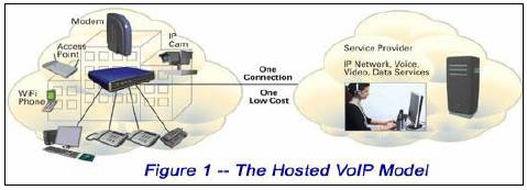 目前,通過不同類型的公司提供的托管VoIP業(yè)務(wù),即便遠(yuǎn)離中小型企業(yè)的服務(wù)供應(yīng)商的網(wǎng)絡(luò),也可實(shí)施IP 專用小交換機(jī) (IP PBX) 功能。VoIP 供應(yīng)商的 IP PBX 管理往返于中小型企業(yè)的 VoIP 呼叫,最重要的是將中小型企業(yè)發(fā)起的呼叫連接到公共交換電話網(wǎng) (PSTN)。中小型企業(yè)配備的 IP 話機(jī)可連接到帶防火墻的在線 IP 路由器,然后通過寬帶因特網(wǎng)接入線路即可將其連接至 VoIP 供應(yīng)商(圖 1)。
