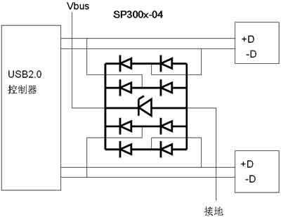 圖8 USB端口保護(hù)器件SP300x