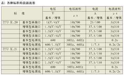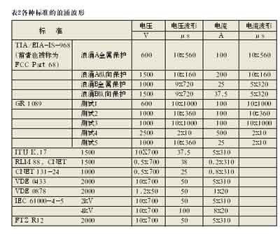 為了設(shè)計(jì)出最合適的VoIP保護(hù)解決方案,了解保護(hù)器的各種浪涌等級(jí)和保護(hù)電壓就很重要。常見(jiàn)浪涌電壓電平如表1所示: