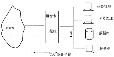 由于大多數(shù)“200”業(yè)務(wù)平臺采用的是上控機及語音卡系統(tǒng)(見圖1所示),由語音卡完成語音提示及交換處理,整體話務(wù)處理能力差,不太適合大中城市使用;另外其語音提示是經(jīng)過語音卡壓縮記錄在硬盤上,放音時經(jīng)讀盤、解壓恢復(fù)成語音信號,處理速度慢,交換占用總線資源,在話務(wù)量大時,易出現(xiàn)阻塞現(xiàn)象,并將影響現(xiàn)有的“200”業(yè)務(wù)。