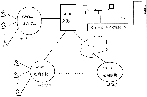 解決校園電話的問題主要在于兩個方面,首先是要解決學(xué)生打電話的問題,其次是要解決學(xué)生接電話的問題。對于前者,目前各地基本上都是采取在校園安裝投幣電話、磁卡電話及IC卡電話的方式,但這些電話機投資較大、防盜打能力有限、維修不方便。放在室外易受損、被盜、覆蓋率有限,使得在人口密集地區(qū)不可能大規(guī)模使用,而且它們也不能很好地解決學(xué)生接電話的問題。要想從根本上解決校園電話的問題就在于給每個學(xué)生宿舍(醫(yī)院中即每個醫(yī)院病房)裝電話,然后利用所裝的電話提供多樣化的可供學(xué)生選擇的業(yè)務(wù)。