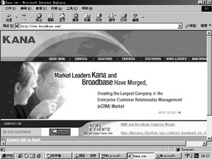 Kana是美國在線服務領域的知名公司,其eCRM軟件在客戶關系管理領域極具代表性。Kana公司剛開始只提供電子郵件響應管理技術,但是通過一系列的收購舉措,Kana已經(jīng)可以提供端到端的客戶服務解決方案。最近,Kana并購了美國Broadbase公司,成為在線客戶服務領域的“巨頭”。該公司的旗艦級產(chǎn)品主要是針對Email回復的客戶服務系統(tǒng),Kana的Email客戶服務軟件被Yahoo!和AOL等著名的網(wǎng)絡公司采用。