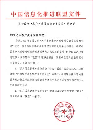 近日,由中國移動(dòng)、中國網(wǎng)通、中國聯(lián)通、海爾集團(tuán)、聯(lián)想集團(tuán)、摩托羅拉、微軟、CTI論壇等20多家單位發(fā)起籌備的"中國客戶關(guān)系管理專業(yè)委員會(huì)"(以下簡稱專委會(huì)),經(jīng)信息產(chǎn)業(yè)部中國信息化推進(jìn)聯(lián)盟的批準(zhǔn),正式在京成立。