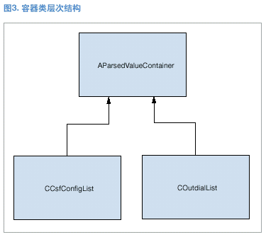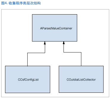 AparsedValueContainer類沒有數(shù)據(jù)和方法。它僅用于配合收集程序類的運(yùn)行。(見圖3。)抽象收集程序類純虛擬功能CollectValues()的第二個(gè)影響因素是容器,當(dāng)在具體收集程序類實(shí)施中定義了容器時(shí),必須使用通用的基礎(chǔ)類。所以在真正使用容器之前,必須在每個(gè)具體的收集程序類中進(jìn)行向下類型轉(zhuǎn)換。