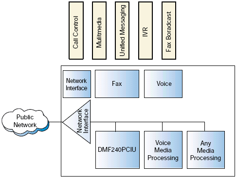 還有另外的選擇, 開發(fā)者可以選擇DM/F240-1T1-PCIU 和 DM/F300-1E1-PCIU, 它們有板卡上的網(wǎng)絡(luò)接口, 或者也可以選擇 CPi/2400-1T1-PCIU 和 CPi/3000-1E1-PCIU 傳真卡, 它們使用傳統(tǒng)的 GammaLink API.