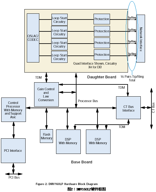當(dāng)板卡上的呼叫處理資源被利用的時(shí)候,網(wǎng)絡(luò)信號(hào)就被提取出來(lái)并且被送到板卡上的控制處理器中,該處理器可以改變信道狀態(tài)而且可以通過(guò)共享的RAM和主機(jī)的PCI總線將信道事件傳送給應(yīng)用程序接口。