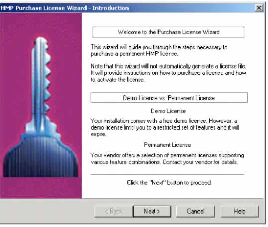 2. 在HMP許可證管理器窗口中(圖16),點(diǎn) How to Purchase License...按鈕。HMP購(gòu)買(mǎi)許可證導(dǎo)航將出現(xiàn)(圖17)。該向?qū)⒁徊讲街笇?dǎo)你購(gòu)買(mǎi)一個(gè)永久的HMP許可證。