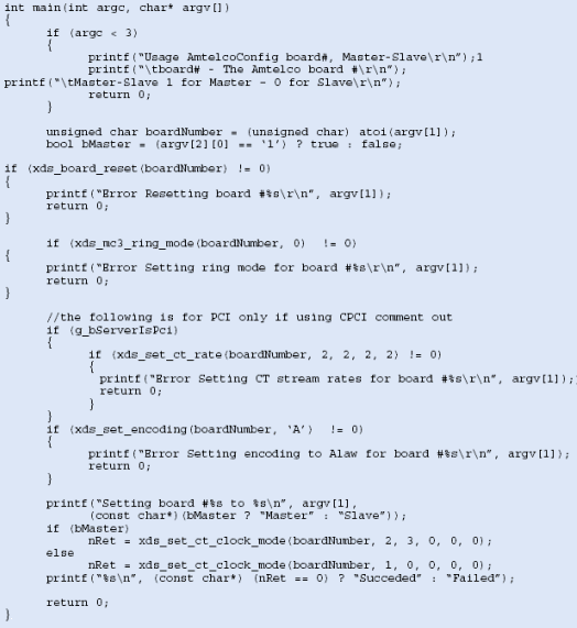 圖10所示為配置Amtelco卡的配置代碼示例,這個(gè)應(yīng)用需要在每一個(gè)服務(wù)器上運(yùn)行。