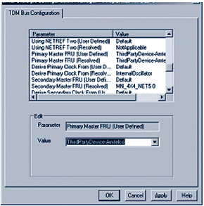 現(xiàn)在需要選擇合適的TDM總線的功能,對(duì)合適的類型(對(duì)于PCI,選擇H.100,對(duì)于CompactPCI,選擇H.110),您需要選擇主選項(xiàng)和客戶端選項(xiàng)。如果該設(shè)備將要為CT總線(客戶端服務(wù)器)提供主時(shí)鐘,選中TDM總線主控制選項(xiàng),然后單擊下一步。圖5顯示的是CompactPCI服務(wù)器在系統(tǒng)中配置為客戶端服務(wù)器的選擇。