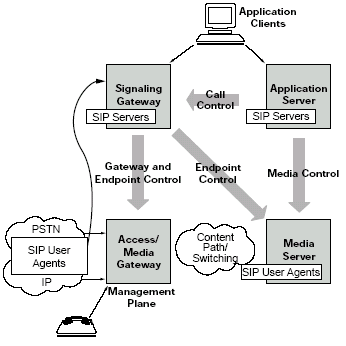 許多語音服務(wù)都是由媒體服務(wù)器提供的。例如,一個客戶給某個電子商務(wù)網(wǎng)站打電話會被接到一個自動語音應(yīng)答(IVR)上或者自動總機上。這些應(yīng)用使用了語音,語音識別和音頻等功能,都是運行在媒體服務(wù)器上的。在下一代網(wǎng)絡(luò)的實現(xiàn)中,媒體服務(wù)器就象是另一個電話(或者說,一個SIP的終端)。因此,他們可以享受和用戶一樣的SIP的優(yōu)點。